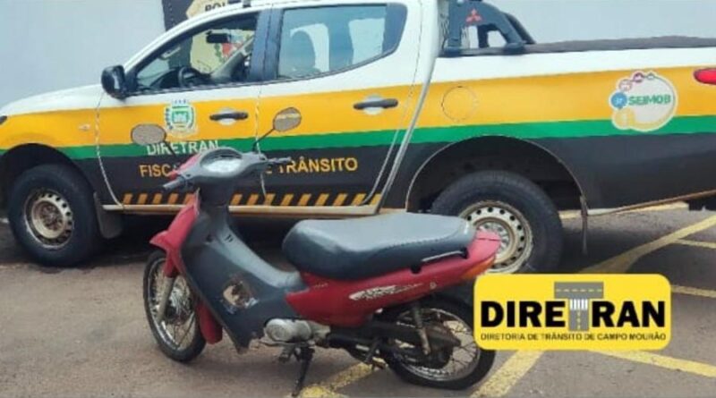 Uma equipe de agentes da Diretoria de Trânsito de Campo Mourão (Diretran) localizou, nessa terça-feira (18), uma motoneta Honda Biz 100 aparentemente abandonada na área central da cidade. Foi contatado que o veículo possui mais de R$ 39 mil em débitos. O caso foi identificado durante patrulhamento pela região.