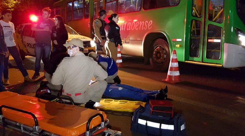 O motorista de uma pick-up GM/Montana causou um acidente de trânsito na noite dessa segunda-feira (14), em Campo Mourão, após invadir uma via preferencial deixando duas pessoas feridas, um rapaz de 19 anos e uma moça de 22.