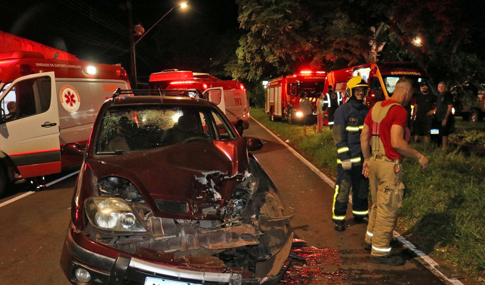 Vídeos que circulam nas redes sociais mostram o momento exato da colisão, quando a caminhonete transitava em direção ao centro pela pista contrária (que dá acesso à saída para Goioerê) e atingiu o automóvel, que teve a parte dianteira completamente destruída.
