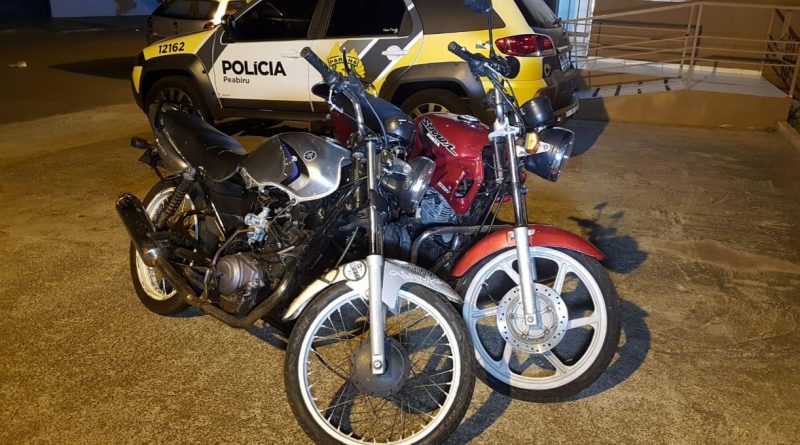 Duas motocicletas foram recuperadas pela Polícia Militar de Peabiru logo após serem furtadas, na noite deste domingo (25). Uma delas estava escondida no interior de uma residência na Rua Professor José Ferreira e a outra em meio a um mato, nas proximidades.