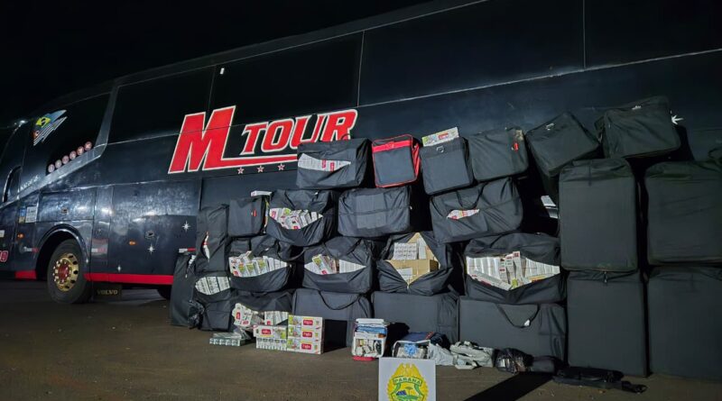 PM intercepta ônibus com carga de contrabando e detém 9 pessoas