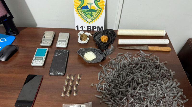 Durante uma varredura no local onde o autor foi detido, os policiais localizaram diversos entorpecentes e materiais utilizados no tráfico de drogas, entre eles cocaína, crack e maconha, além de balanças de precisão, embalagens, faca para fracionamento, aparelhos celulares e dinheiro em espécie.