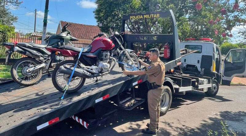 A Polícia Militar (PM), recuperou na manhã desta quinta-feira (1º) duas motocicletas furtadas em Campo Mourão. As motos, uma NXR Broz e uma Honda CG 150 Titan, foram encontradas escondidas no interior de uma residência na rua Água-Marinha, no jardim Tropical.