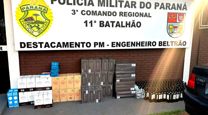 Uma equipe da Polícia Militar (PM) apreendeu nessa quarta-feira (12), na cidade de Engenheiro Beltrão, um contrabando de vinhos argentinos entre outros produtos eletrônicos de origem estrangeira. As mercadorias estavam em um veículo VW Polo.