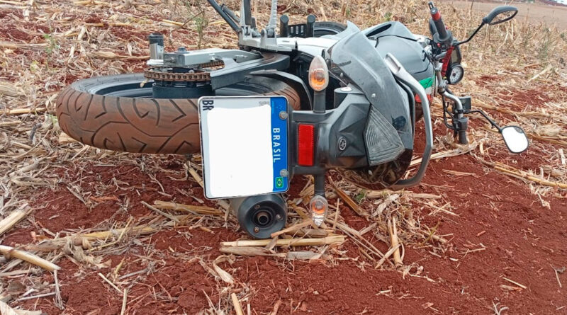 A PM recebeu informações de populares indicando onde estava o veículo. Uma equipe foi até o local, uma área rural nas proximidades do distrito de Sussuí, e encontrou o veículo caído no chão, em meio a uma lavoura de milho colhida. A moto estava com a chave na ignição e dois capacetes.
