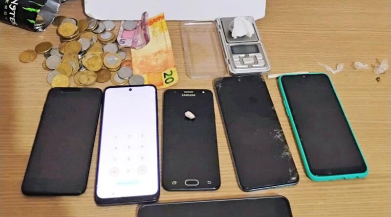 Durante buscas na residência, foram encontrados cerca de seis celulares espalhados pela residência, também maconha e R$ 64,50 em espécie em notas diversas, dinheiro característico do tráfico de drogas. Diante das evidências, o acusado recebeu voz de prisão, sendo encaminhado à delegacia de Campo Mourão, juntamente com os materiais apreendidos.