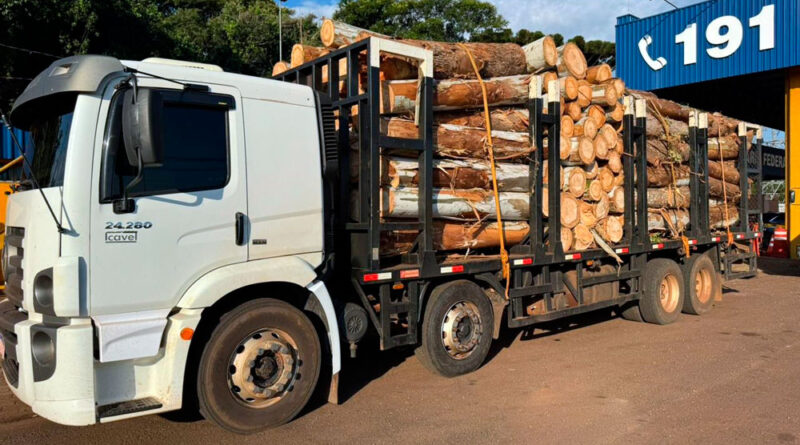 A Polícia Rodoviária Federal (PRF) flagrou um caminhão com 15 toneladas de excesso de carga durante fiscalização na manhã desta quinta-feira (5), na BR-277. A abordagem ocorreu nas proximidades do posto da PRF. O veículo transportava toras de eucalipto e seguia de Quarto Centenário com destino a Cascavel. Na pesagem, os policiais constataram que o caminhão, cuja capacidade máxima é de 29 toneladas, transportava 44 toneladas, configurando excesso de 15 toneladas.