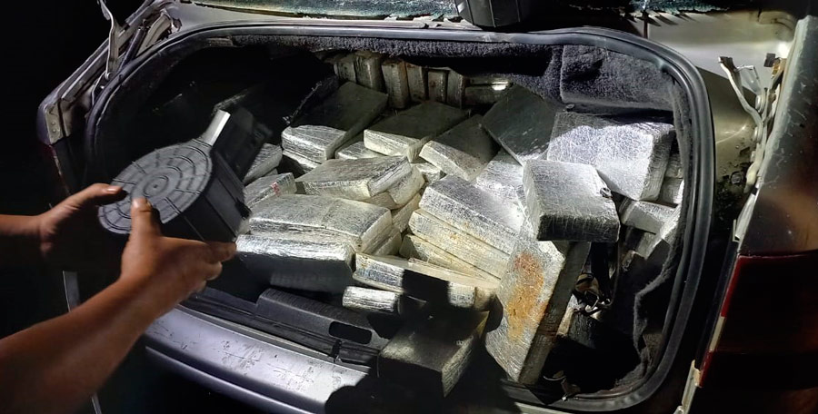Com as informações de populares, uma equipe deslocou ao local, encontrando o carro, um Volkswagen Polo abarrotado de maconha. A droga estava escondida no porta malas e forros das portas do veículo.