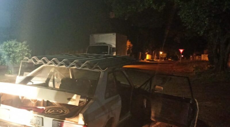 Com a aproximação, os policiais também perceberam que sobre o teto havia diversas telhas de fibrocimento, o que chamou a atenção dos policiais devido ao horário. Foi realizada a abordagem e verificado que o condutor conta com diversas passagens pela polícia.