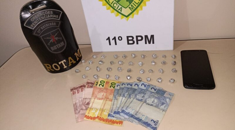 Na busca pessoal aos dois indivíduos, foram encontrados com um deles 27 pedras de crack e R$ 90,00 em espécie e notas diversas. Com o outro rapaz, a polícia localizou mais 11 pedras de crack e R$ 32,00, também em espécie.