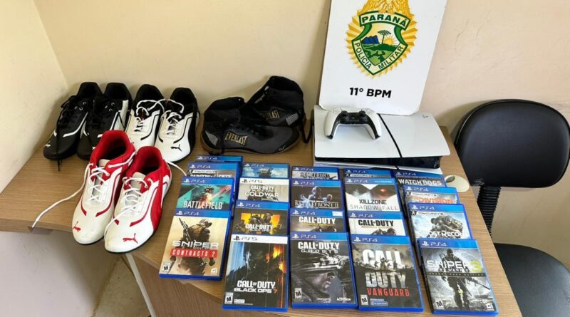 No local, os policiais abordaram o suspeito, que estava com uma bolsa de viagem. Dentro dela havia um videogame PlayStation 5, diversos jogos eletrônicos e um controle. Conforme informações de vizinhos, os objetos seriam provenientes da residência invadida.