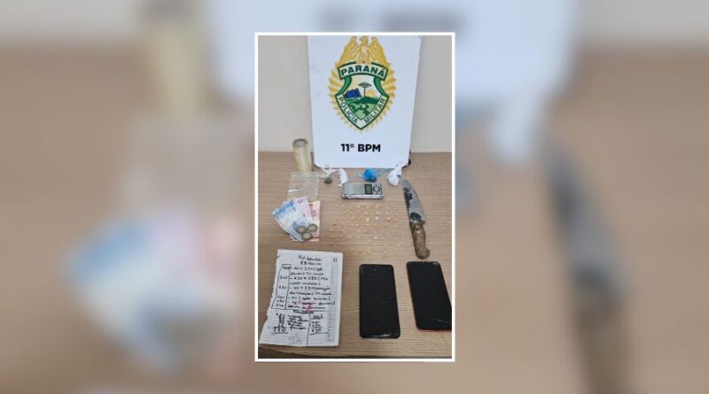 Três pessoas foram presas em Campo Mourão na noite desse sábado (27) em duas ocorrências distintas relacionadas ao tráfico de drogas. As situações foram registradas em diferentes pontos da cidade, no Jardim Aeroporto e na área rural, durante ações da Polícia Militar (PM), que também resultaram na apreensão de entorpecentes, dinheiro, arma de fogo e materiais utilizados na prática do crime.