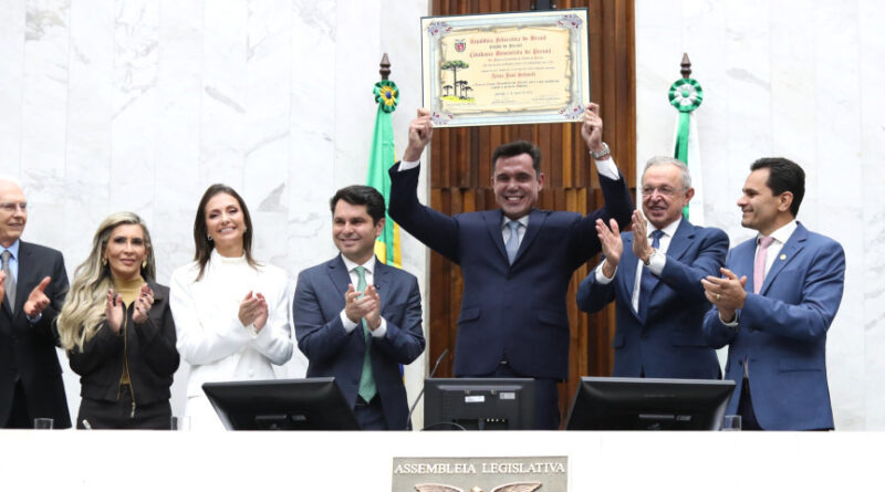 O médico oftalmologista Artur José Schmitt é o mais novo Cidadão Benemérito do Paraná. Ele recebeu o título nesta segunda-feira (11), em solenidade no Plenário da Casa de Leis. A homenagem foi proposta pelo presidente da Assembleia, deputado Alexandre Curi (PSD), que falou sobre a importância de homenagear um paranaense que tanto tem colaborado para a sociedade. “É uma honra para o Estado do Paraná reconhecer alguém que contribuiu de forma significativa para o desenvolvimento do nosso estado. O doutor Artur Schmitt possui uma sólida formação, realiza um trabalho social admirável e atende, em sua clínica, desde pessoas mais humildes até aquelas com melhores condições financeiras”, afirmou.