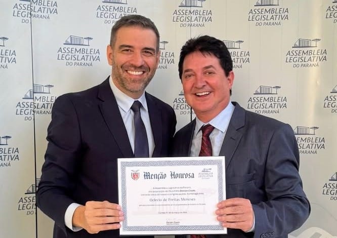 O prefeito de Farol, Oclécio Menezes, foi um dos homenageados com o título de Menção Honrosa durante sessão solene realizada nessa quinta-feira (5) no plenário da Assembleia Legislativa do Paraná (Alep), em Curitiba.