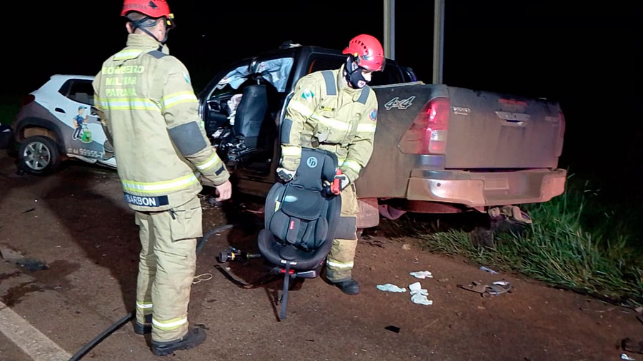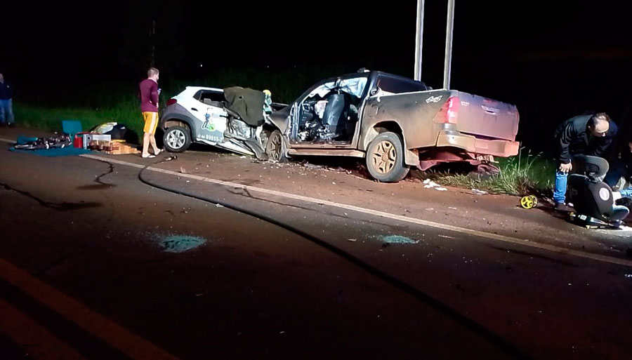Um grave acidente na noite dessa terça-feira (15) na rodovia BR-369, em Mamborê, causou a morte de quatro pessoas e deixou outras quatro vítimas feridas. A forte batida envolveu um Renault Kwid e uma caminhonete Toyota Hilux, no segundo trevo de acesso a Mamborê, para quem segue no sentido a Cascavel. A identidade das vítimas, todas do sexo masculino, não foi divulgada até o momento.