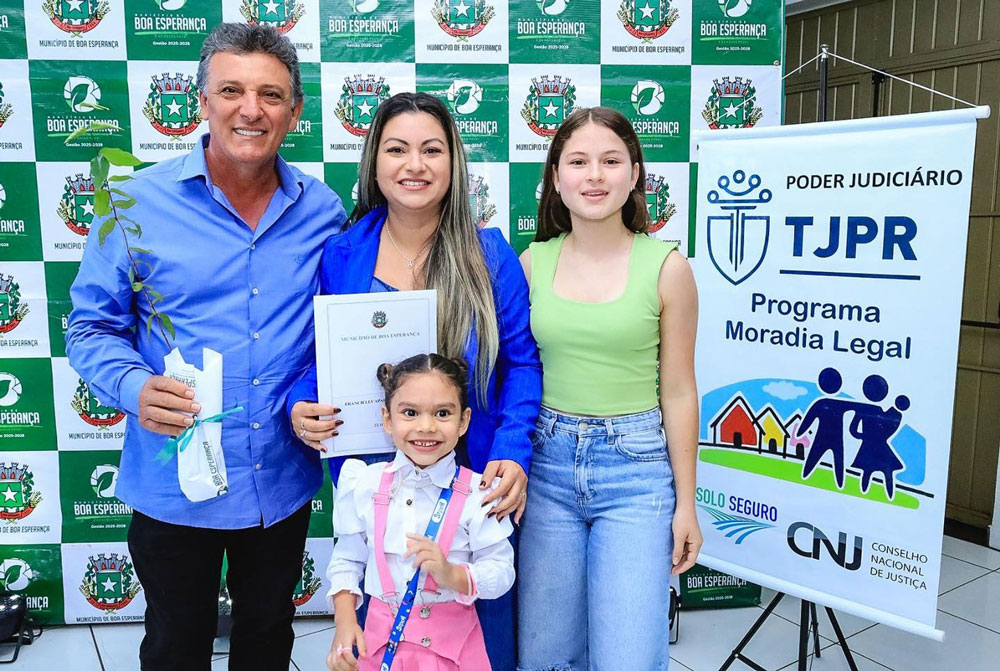 O sonho da casa própria se tornou realidade para 47 famílias de Boa Esperança. Elas receberam os títulos de propriedade de seus imóveis, localizados nos conjuntos Vilas Boas e Jardim América. A ação foi realizada em parceria entre o município e o Tribunal de Justiça do Paraná (TJ-PR), por meio do Programa Moradia Legal.