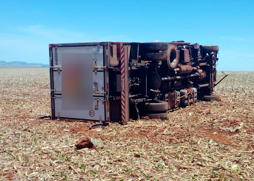 Um grave acidente foi registrado no início da tarde desta sexta-feira (24) na rodovia PR-082, na saída de Engenheiro Beltrão para Quinta do Sol, no acesso aos conjuntos Andorinhas e Paulo Grandi. Um caminhão frigorífico Iveco atingiu violentamente a traseira de um Chevrolet Astra, que foi arremessado para fora da pista e acabou parando em uma valeta às margens da via. Após o impacto, o caminhão saiu da rodovia e tombou cerca de 50 metros adiante, em meio a uma lavoura de milho colhida.