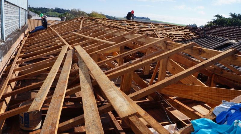 Reparos no muro que apresenta trincas e em partes da cobertura