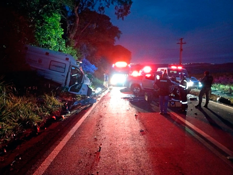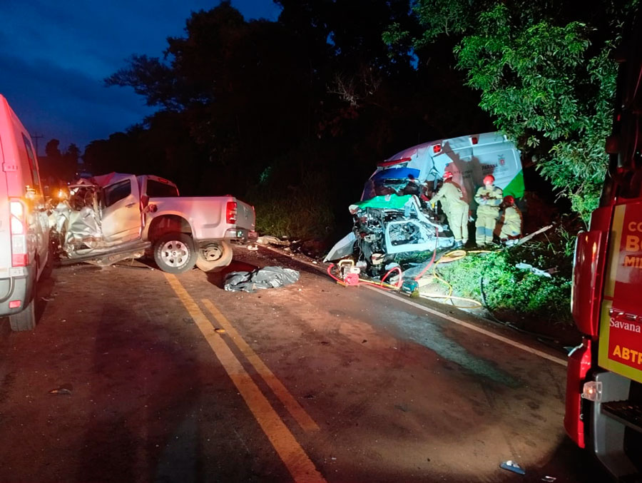 Colisão frontal entre ambulância e caminhonete na PR-082 deixa dois mortos