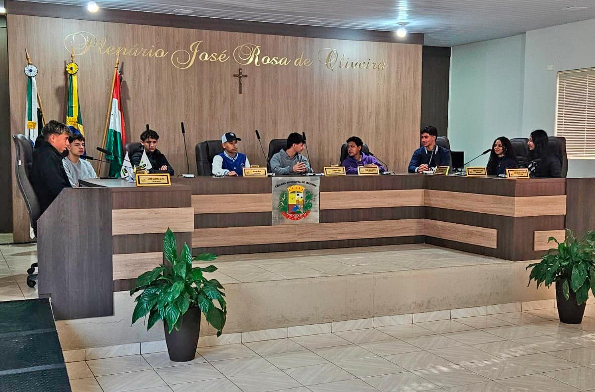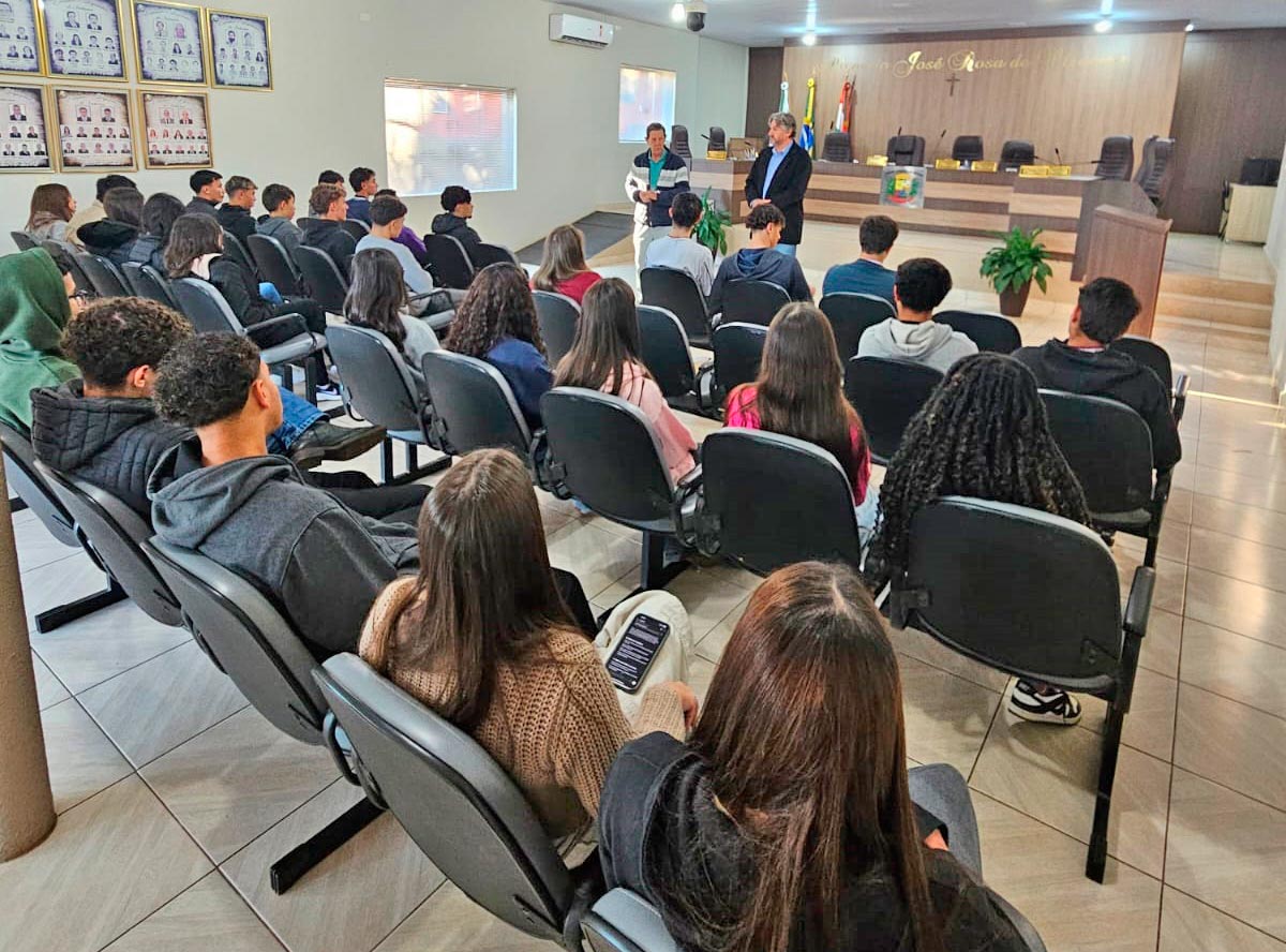 A proposta pedagógica foi desenvolvida em sala de aula por meio da leitura de textos e discussões, que serviram de base teórica para reflexões dos estudantes. Como etapa final, a turma teve a oportunidade de conhecer as instalações do Legislativo, ocupar os assentos destinados aos parlamentares e interagir diretamente com os vereadores Pedro Smak Batista, vice-presidente da Câmara, e Cerineu dos Santos.