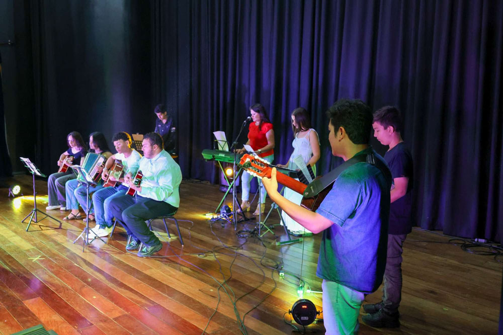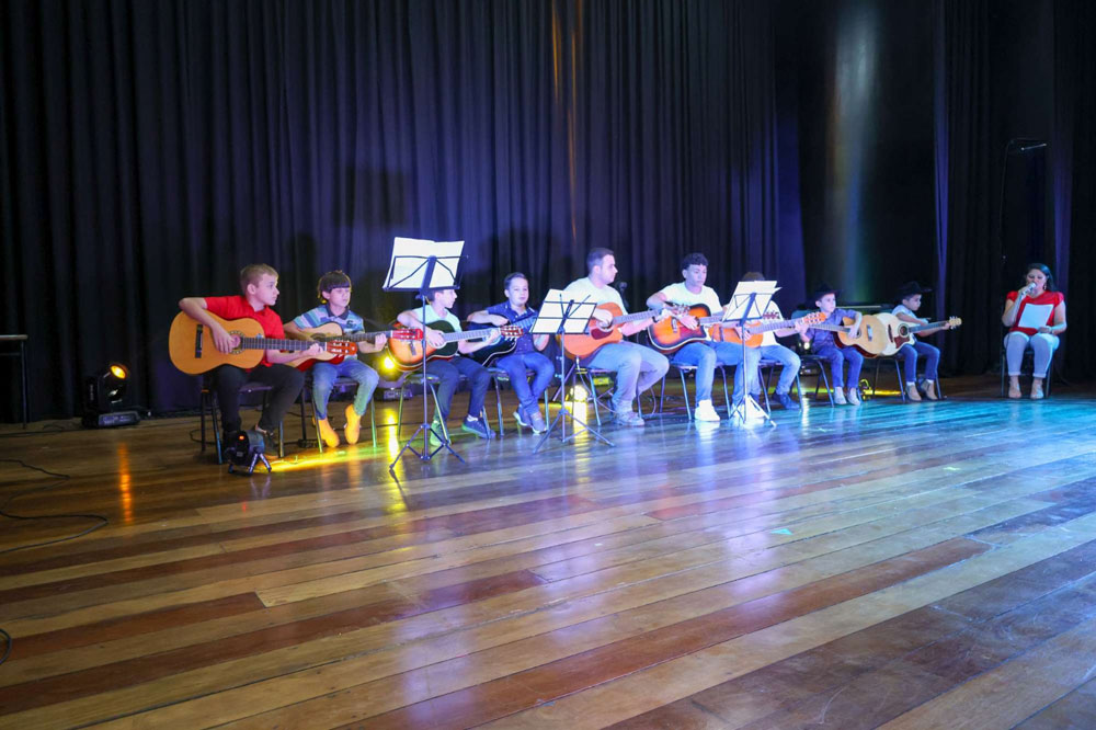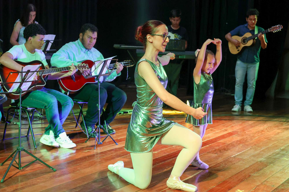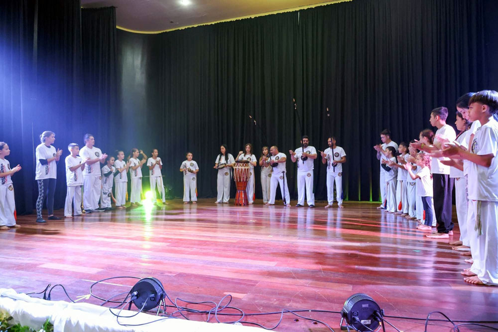 A programação artística da noite foi extensa e diversificada, reunindo apresentações de música, dança, teatro, poesia, circo, ritmos, zumba e capoeira. A abertura ficou por conta da Banda dos Professores, seguida por coreografias de balé, apresentações instrumentais e performances de alunos e professores, evidenciando o talento desenvolvido ao longo dos anos no Centro Cultural.
