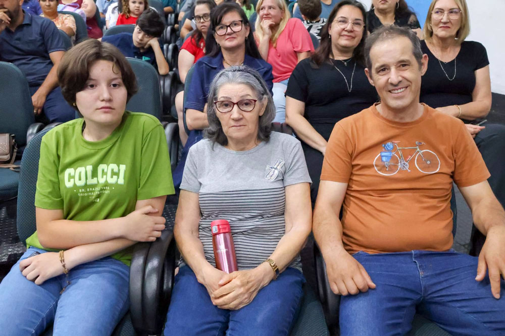 Outro momento marcante foi a homenagem à professora Emília Martins Cruz, que dá nome ao espaço. Por meio de uma sensível contação de histórias, alunas relembraram a trajetória da educadora, nascida em 1921, em Prudentópolis (PR). Professora por três décadas em Mamborê, Emília foi diretora do antigo Grupo Escolar – atual Colégio João XXIII – e grande incentivadora da cultura, coordenando peças teatrais, desfiles folclóricos e eventos cívicos e religiosos, deixando um legado que permanece vivo na memória da comunidade.