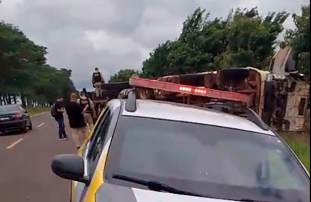 Motorista fica em estado gravíssimo após tombar caminhão na rodovia PR-459