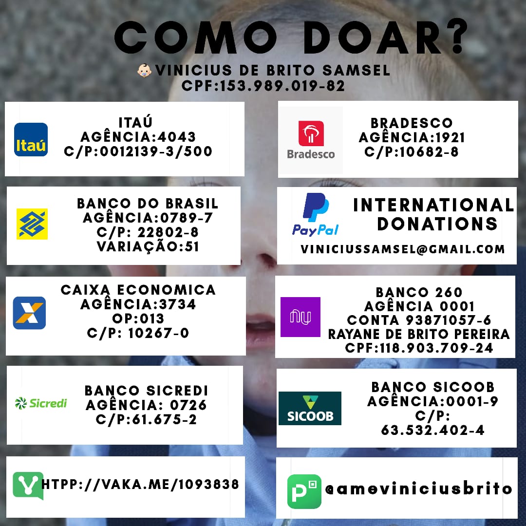 A saída de Vinícius é o remédio chamado Solgezma. Mais uma das peças pregadas pela doença. Custa US$2,1 milhões. Enquanto não é possível a compra, a família vai fazendo o que é possível. A doença compromete principalmente o neurônio motor, dando fraqueza muscular e atrofia. E afeta funções simples da vida, como respirar, engolir e se movimentar. A morte precoce é uma das consequências. Atualmente, Vinícius está usando máscara para auxiliar a respiração. A família abriu contas para arrecadar dinheiro ao tratamento. “Pedimos ajuda de todos que puderem doar alguma coisa. É uma vida que pede ajuda”, disse Rayane.