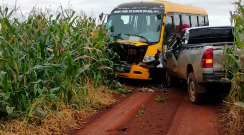 Um micro-ônibus escolar do município de Quinta do Sol, com 25 alunos, se envolveu em um grave acidente nessa terça-feira (2) em uma estrada rural do município. O coletivo acabou sendo atingido por uma caminhonete Toyota Hillux. Apesar da gravidade da colisão, ninguém ficou ferido.