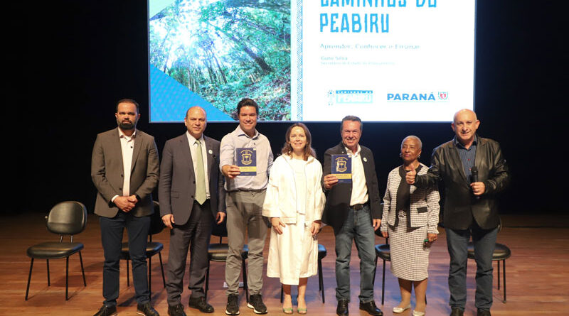 A comunidade escolar da rede estadual de ensino e agentes de turismo e da cultura participaram nesta terça-feira (03), em Curitiba, de um evento realizado pelo Governo do Estado para promover os Caminhos do Peabiru, uma rota histórica de mais de 3 mil anos que atravessa o Paraná e vai até o Peru, conectando o Oceano Atlântico ao Pacífico. Realizado no Teatro Guaíra, o evento “Caminhos do Peabiru – Aprender, Conhecer e Ensinar” contou com a participação de aproximadamente 1,3 mil pessoas, entre diretores e professores de escolas, autoridades e especialistas.