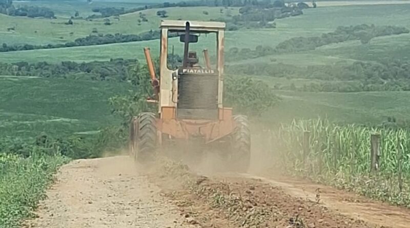 As estradas, também castigadas pelas chuvas, estão recebendo serviços de patrolamento para melhorar o tráfego de máquinas e caminhões durante a safra, bem como facilitar o deslocamento de veículos e ônibus escolares até mesmo em dias chuvosos.