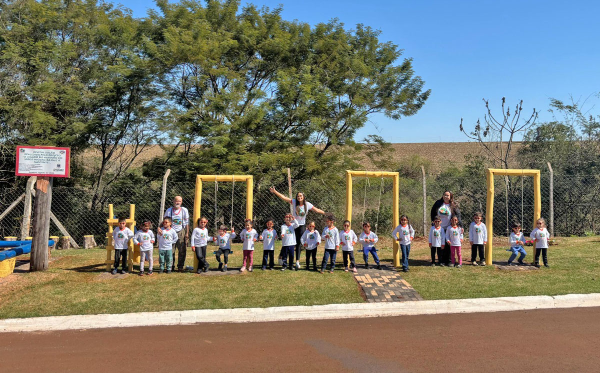 A iniciativa, desenvolvida pelas professoras Thalita Machry e Jaqueline Carvalho, contou com o apoio da prefeitura municipal e de um agricultor local. Segundo as docentes, o resultado foi a transformação completa da área, que agora conta com um parquinho inédito, proporcionando lazer, convivência e bem-estar para toda a comunidade.
