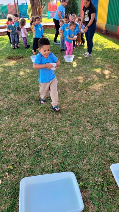 Um trabalho que vai além da sala de aula no Centro Municipal Infantil (CMEI) Arco-Íris de Peabiru está levando crianças de 2 e 3 anos do Infantil 2 a explorarem o mundo à sua volta, literalmente, de forma lúdica e sensorial.