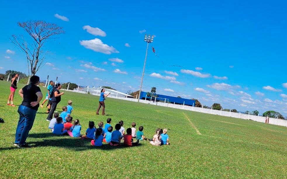 O projeto “Vento no rosto, mão na terra”, conduzido pela professora Lorene Bonete Malizan dos Santos, juntamente com as docentes Liliane Barbosa e Janaina Vieira, tem como objetivo proporcionar aos alunos momentos de descoberta, contato com a natureza e brincadeiras ao ar livre, longe das telas e do ambiente fechado de casa.