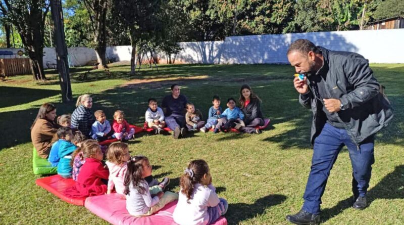 O projeto “Era uma vez… Sacola Viajante”, que envolve 20 crianças da turma do Infantil 3A, com idades entre 3 e 4 anos, está sendo desenvolvido no Centro Municipal de Educação Infantil (CMEI) Arco-Íris, de Peabiru. A iniciativa é conduzida pelas professoras Jaqueline Mathias Belo Alves, Juceléia Scarabel, Marcia Gomes e Mariana Quitéria de Lima.