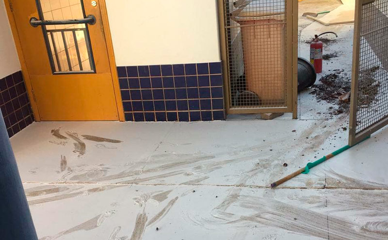 Os bandidos invadiram o espaço durante a madrugada fazendo uma baderna no local. Quebraram um bebedouro de água, danificaram guardas volumes, esvaziaram todos extintores do local, sujaram paredes, e deixaram objetos espalhados pelo espaço.