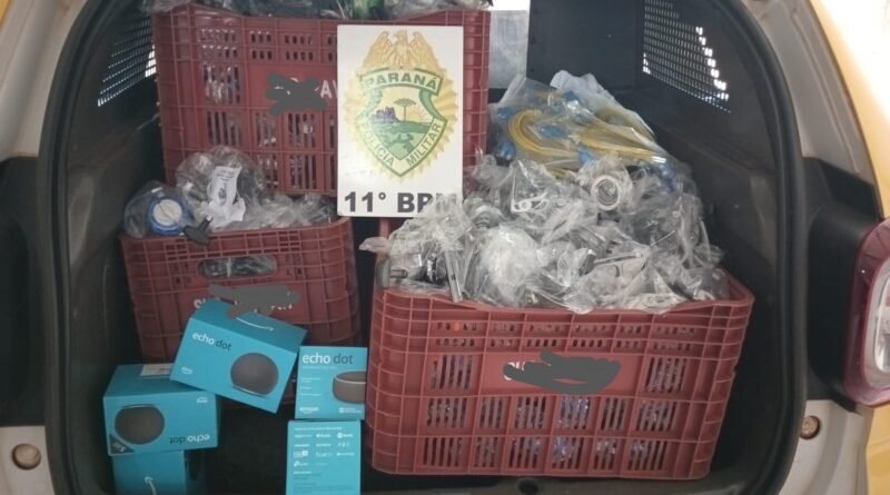 Diversos produtos provenientes de descaminho, adquiridos no Paraguai e avaliados em aproximadamente R$ 7 mil, foram apreendidos pela equipe policial e encaminhados à Receita Federal de Maringá.