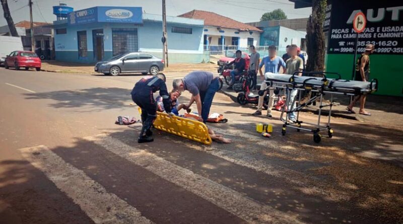 Condutor de moto e ciclista ficam feridos após colisão em Campo Mourão