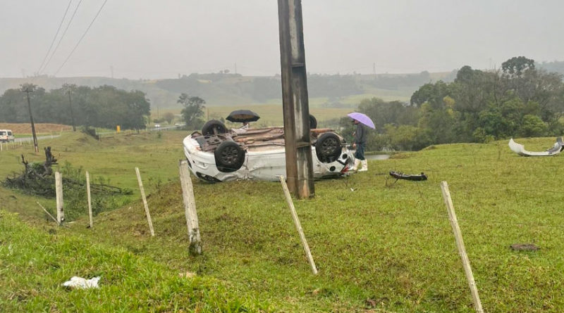 Leia maisCarro saiu da pista capotando em seguida, parando dentro de uma área de pasto.