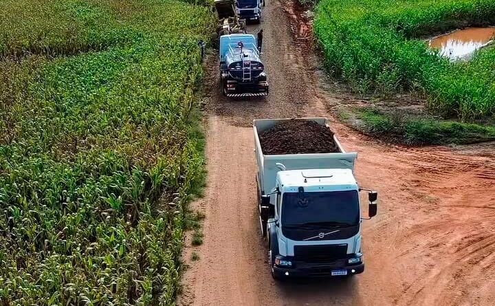 Dentre as obras, estão sendo executadas melhorias em mais de 10 quilômetros da estrada que liga à comunidade Placa São Carlos.