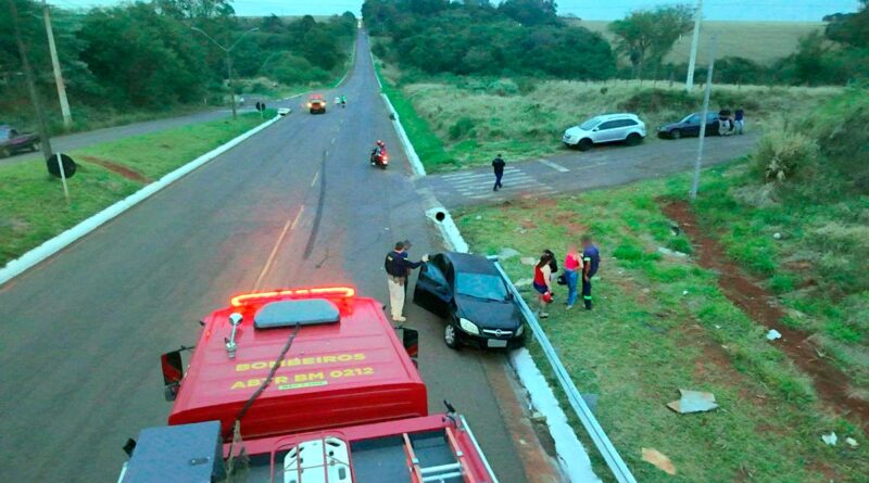 Acidente ocorreu próximo ao trevo do Jardim Ipanema, em Campo Mourão, e deixou condutor e passageiro feridos.