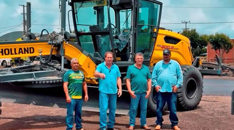 Prefeitura amplia estrutura com motoniveladora e rolo compactador, reforçando serviços de infraestrutura rural.