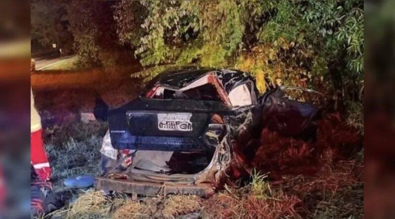Mulher de 39 anos perdeu o controle do veículo e colidiu contra uma árvore na PR-487, em Nova Tebas.